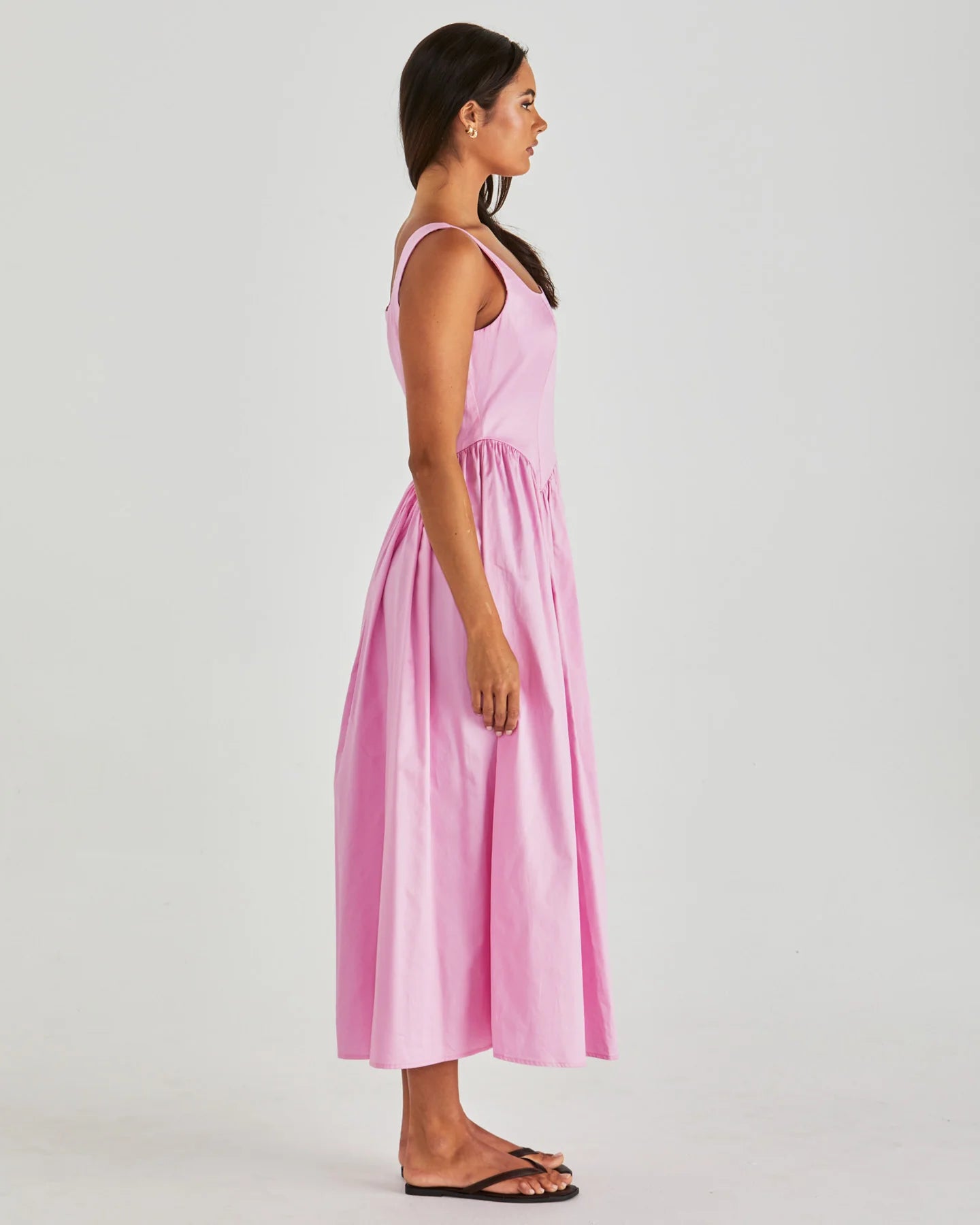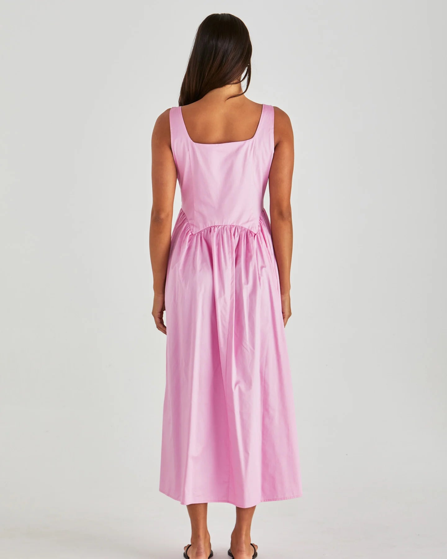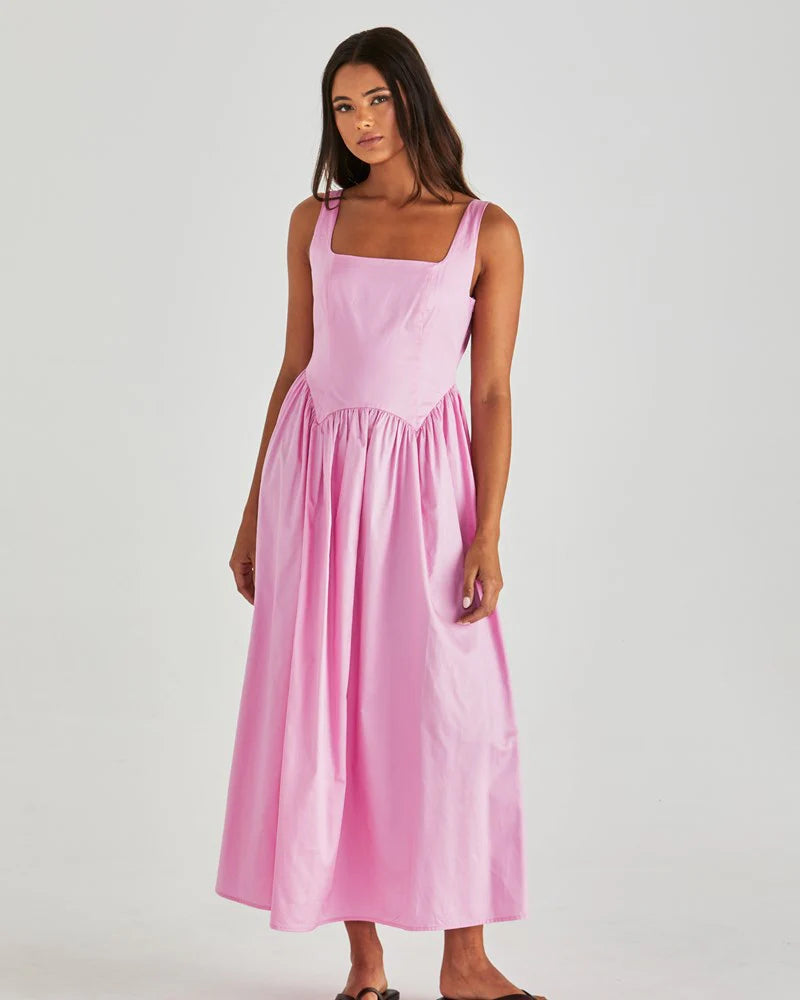 Flattering and effortless, the Aliah Dress features a subtle shape detail at the hip and thick straps for a structured look. The invisible zip keeps things sleek, and side pockets make it practical too. It’s that go-to summer dress that does it all—cool, comfortable, and stylish.