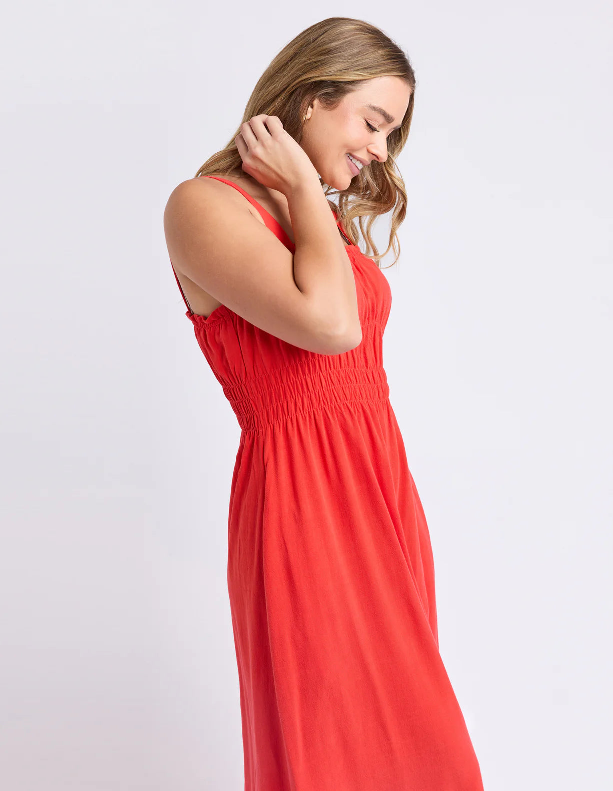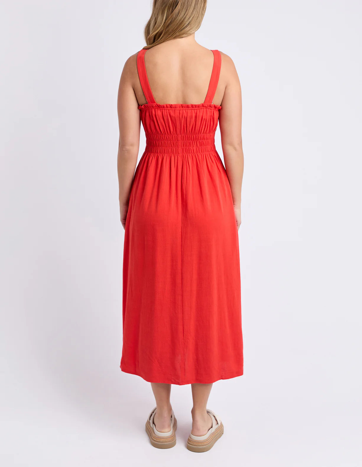 Say hello to sunshine days with the Dandelion Dress. The shirred bodice gives a flattering fit, the midi skirt swishes as you move, and the wide straps keep it comfy. Finished with handy side pockets, it’s a dress made for twirling through summer.