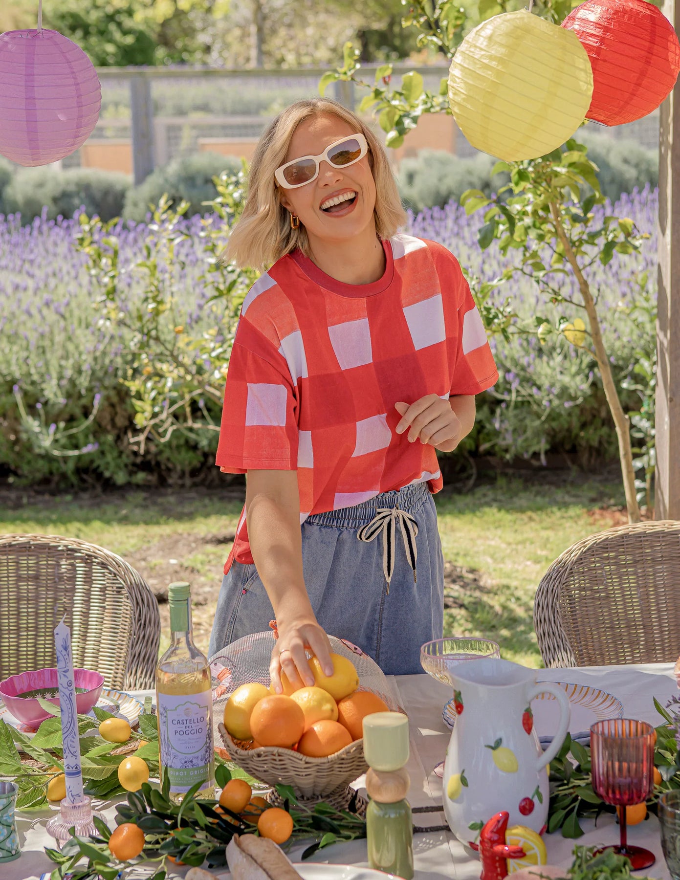 Featuring our exclusive Christmas Poppy Check the Edin Tee bring the fun of the party to any outfit with the colour and comfort of a 100% cotton tee.