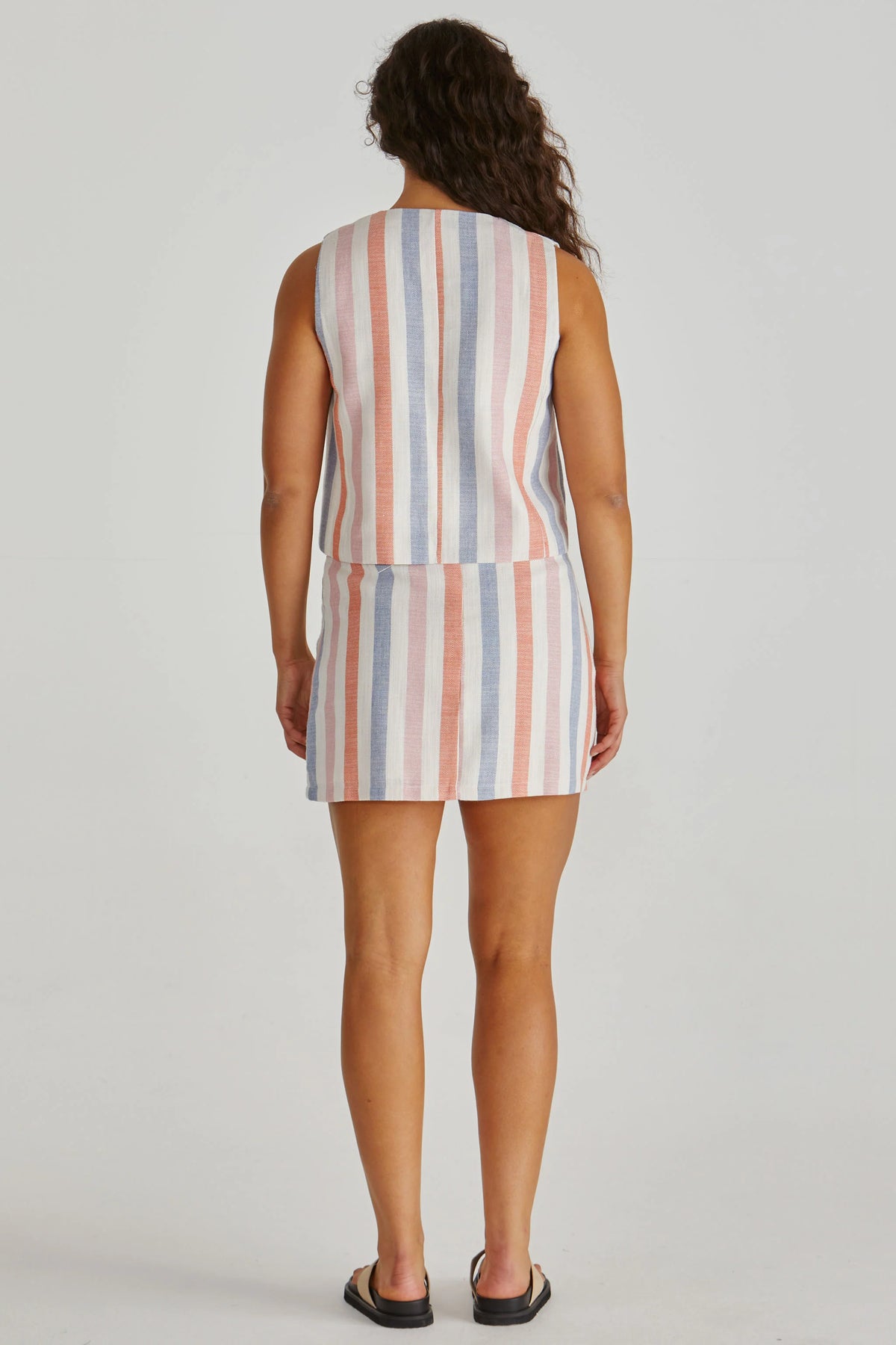 The Travis Vest brings cool-girl tailoring to your everyday wardrobe. With mock horn buttons and princess seams, it’s chic and easy. Pair it back with the matching skirt or denim.