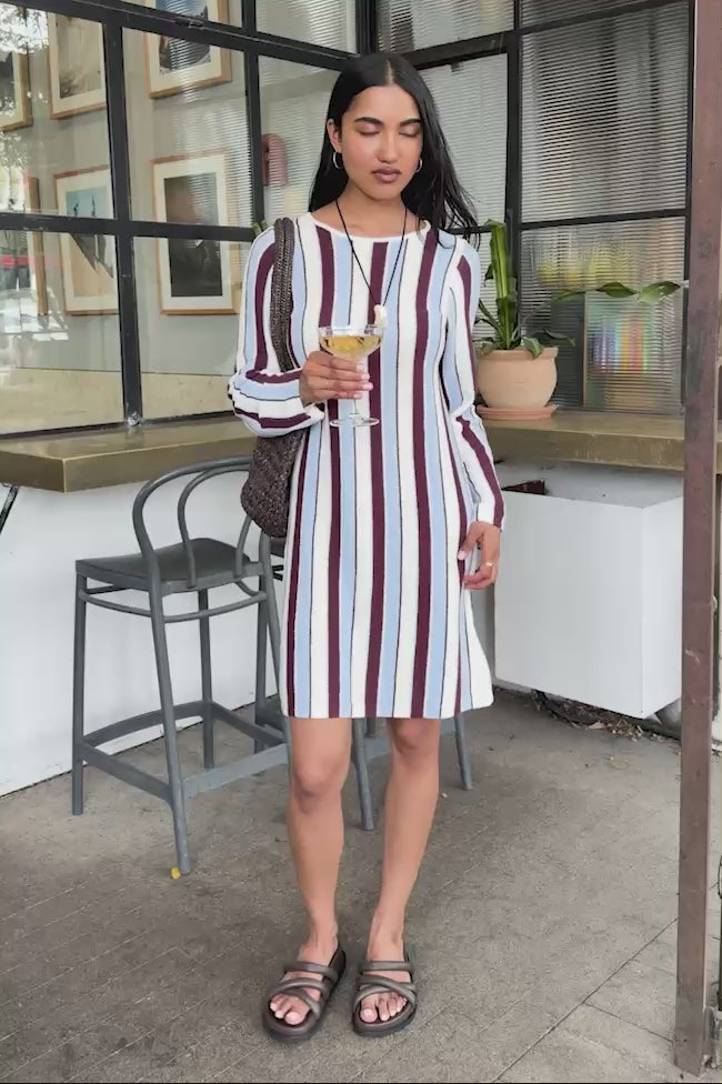 Chloe Stripe Knit Mini Dress | blue wine stripe