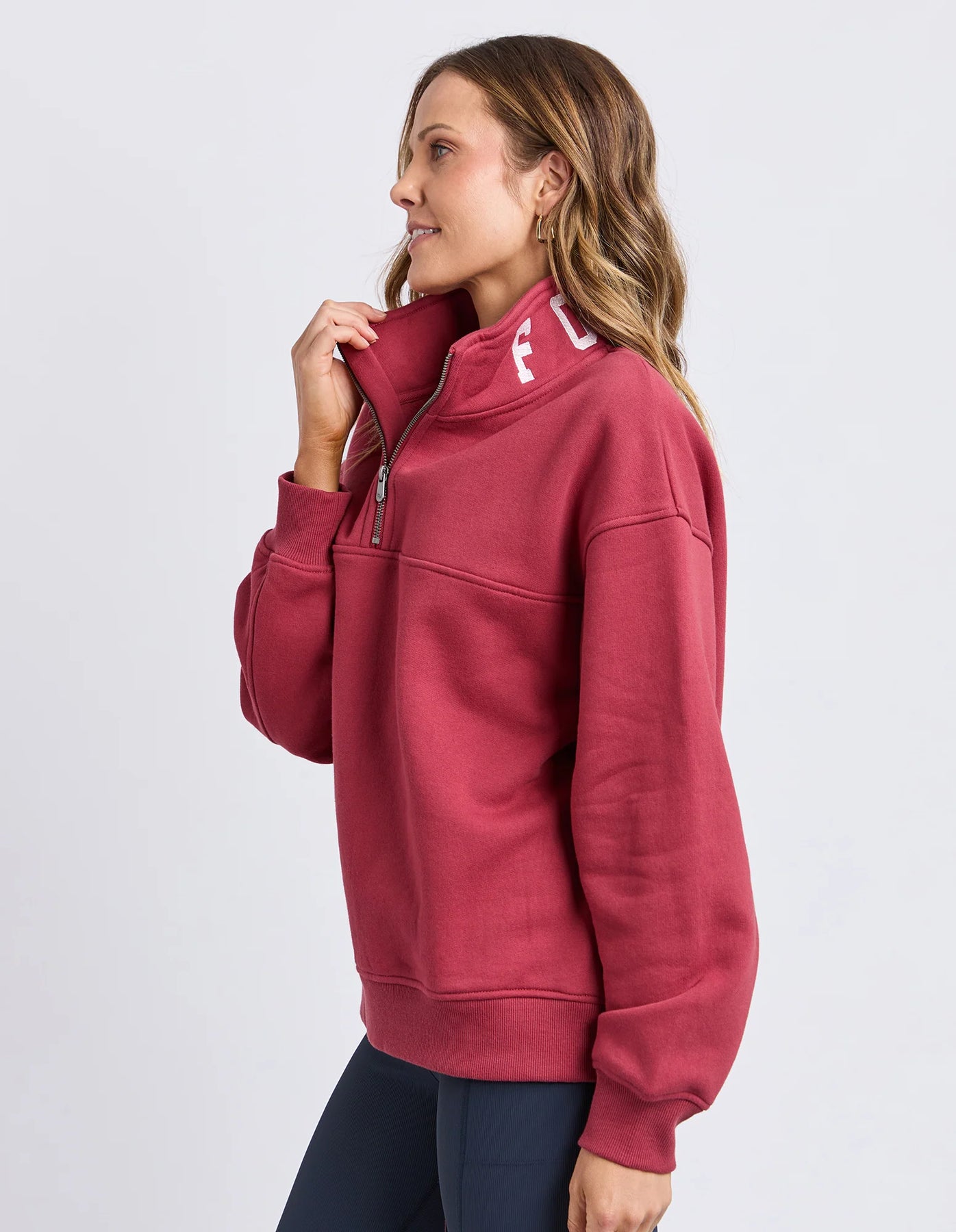 College Contrast Zip Crew | Rust With Pink