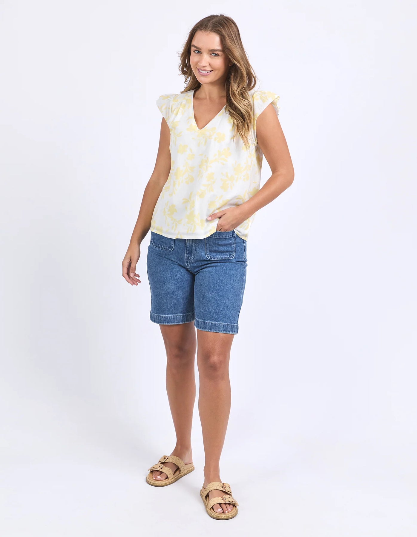 Breeze through sunny days in the Sierra Top. Made from 100% cotton with our exclusive Foxwood print, it features a flattering V-neck and playful frill sleeves - your easy, go-to style for everyday charm.