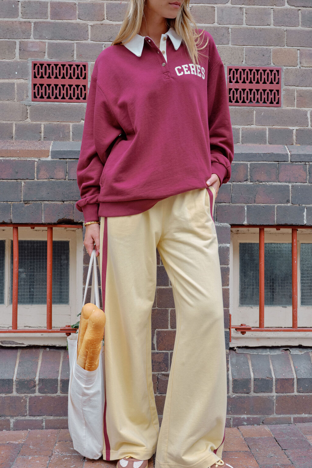 Wren Rugby Sweat | washed burgundy white heritage logo