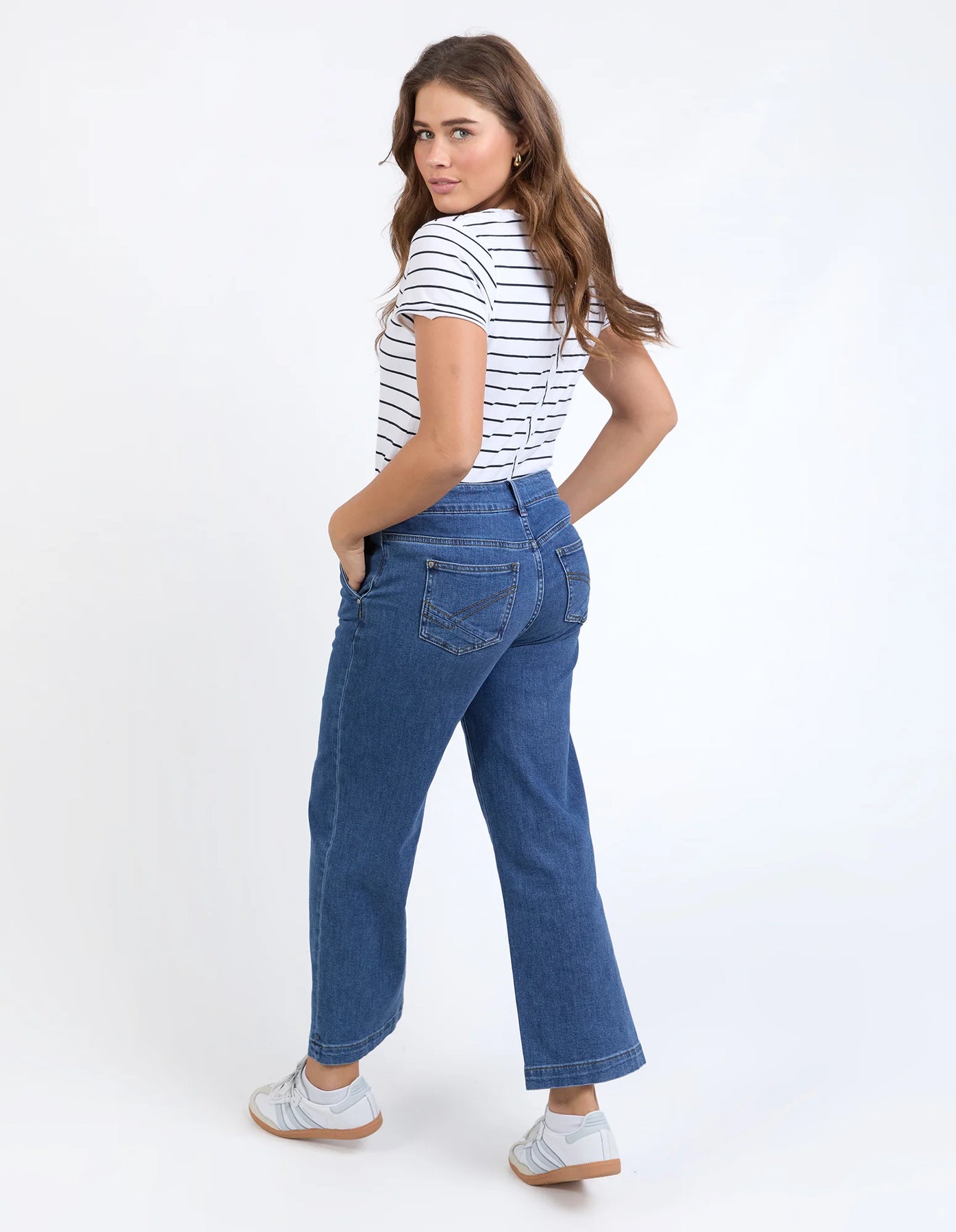 The Izzy Wide Leg Jean Is Casual And Fun. Made From Dark-Blue Stretch Denim These Jeans Feature A Wide Leg, Front & Back Pockets And A High Rise. These Will Be Your Favorite Jean From Weekday To Weekend!