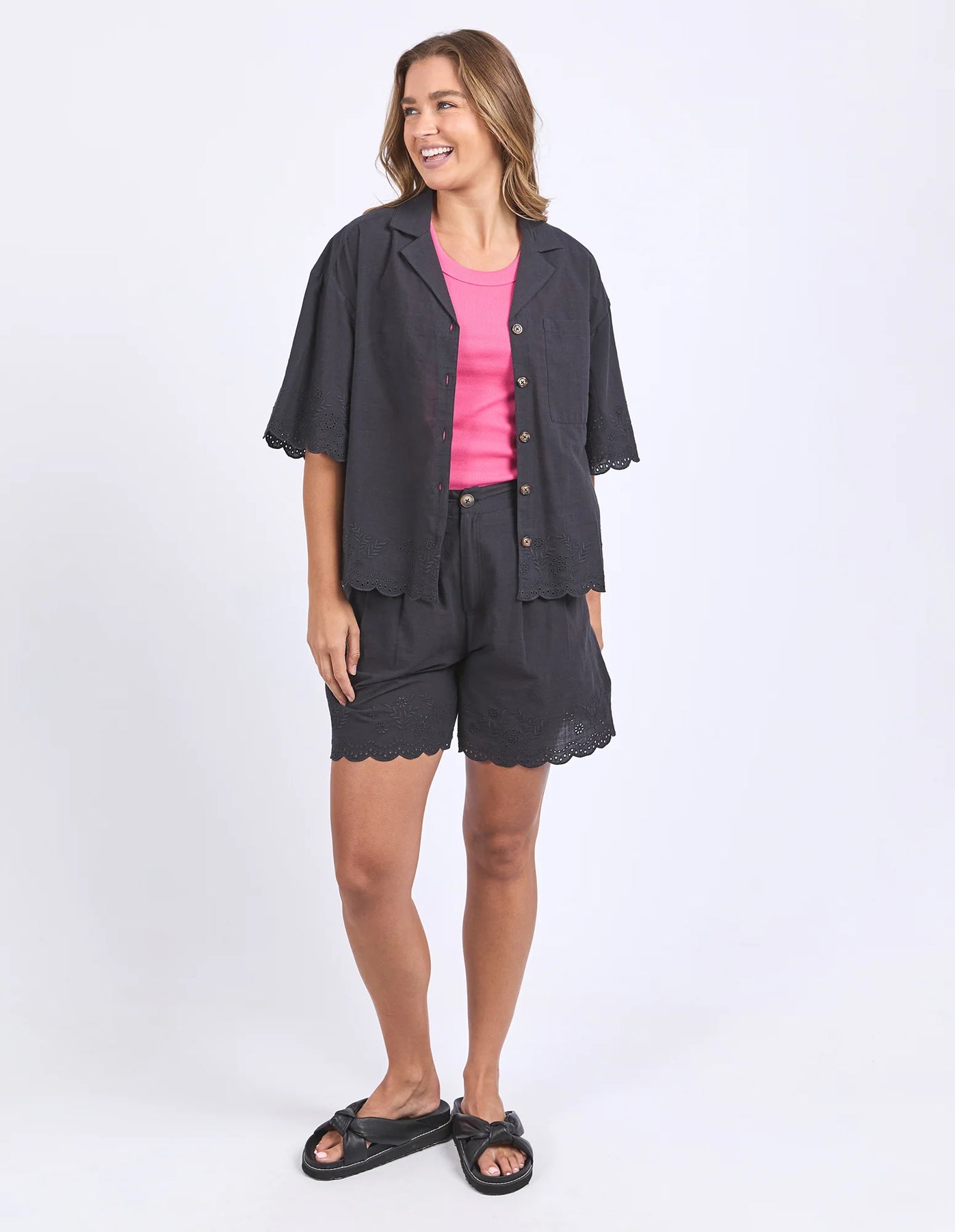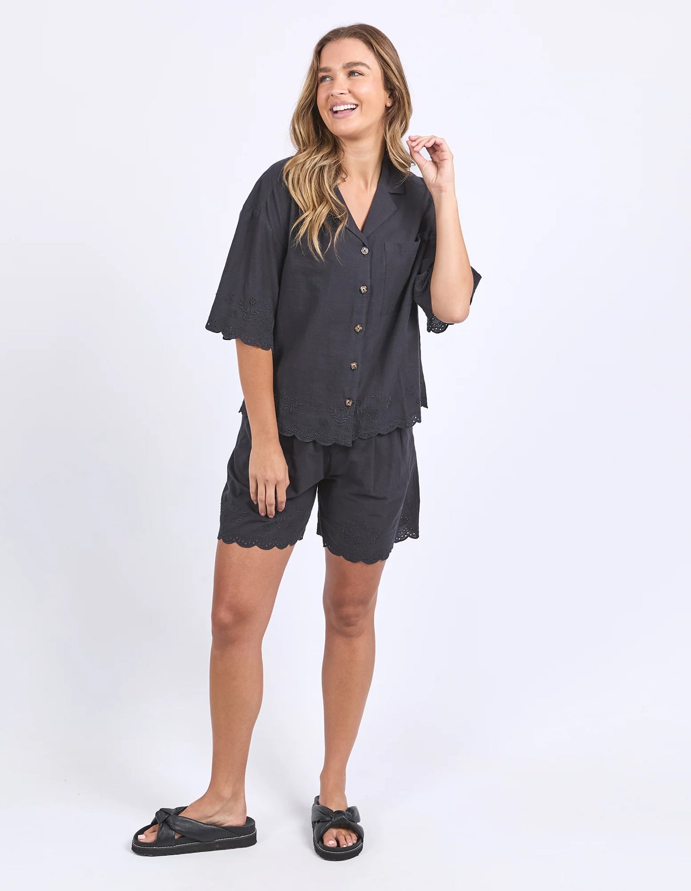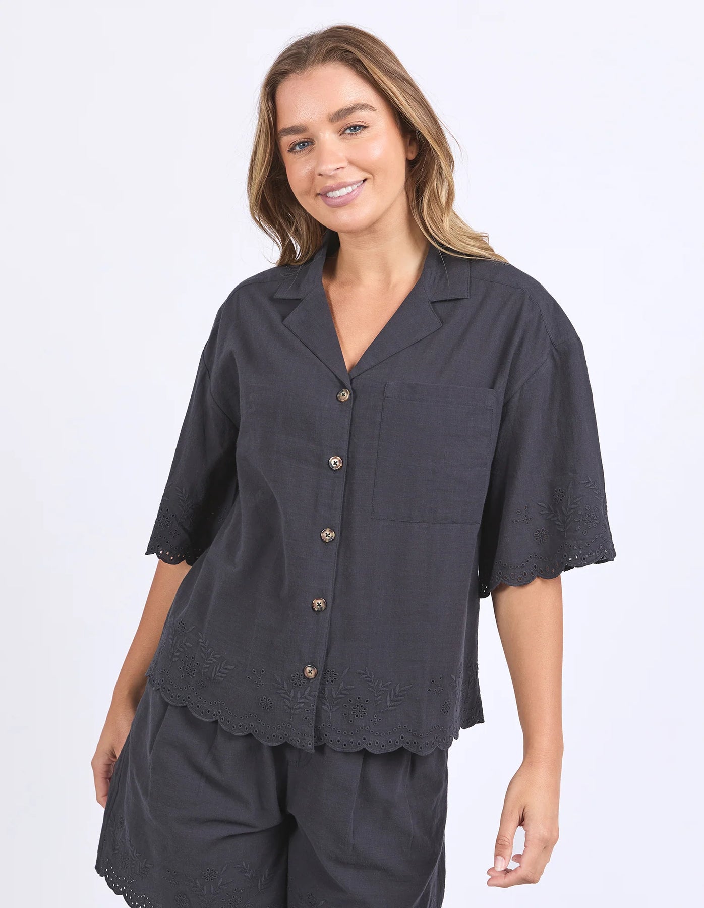 Step up your shirt game with the Madeleine Shirt featuring a classic front placket and embroidered details around the hem and sleeves. Made from 100% cotton, it offers a relaxed fit that’s perfect for easy, stylish days. A subtle statement piece you’ll want to wear on repeat.