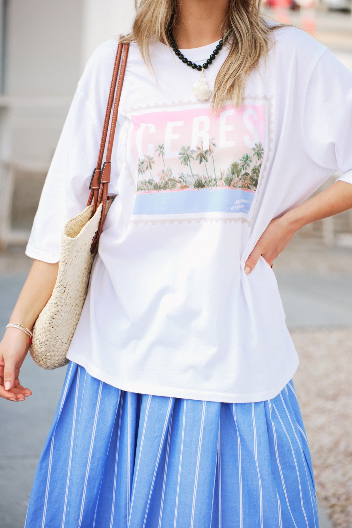 Liv Oversized Tee | white/ceres holiday stamp