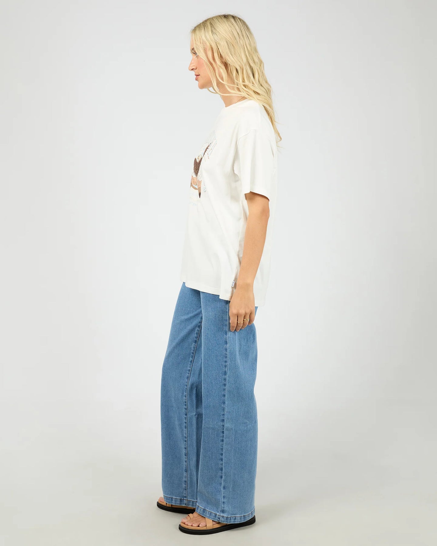 The Montana Relaxed Tee channels vintage Americana vibes with a bold eagle graphic front and centre, printed on soft cotton in a classic vintage white. Its relaxed fit makes it perfect for pairing with denim cut-offs or wide-leg pants for an easy, throw-on-and-go spring look. A statement tee with laid-back attitude.