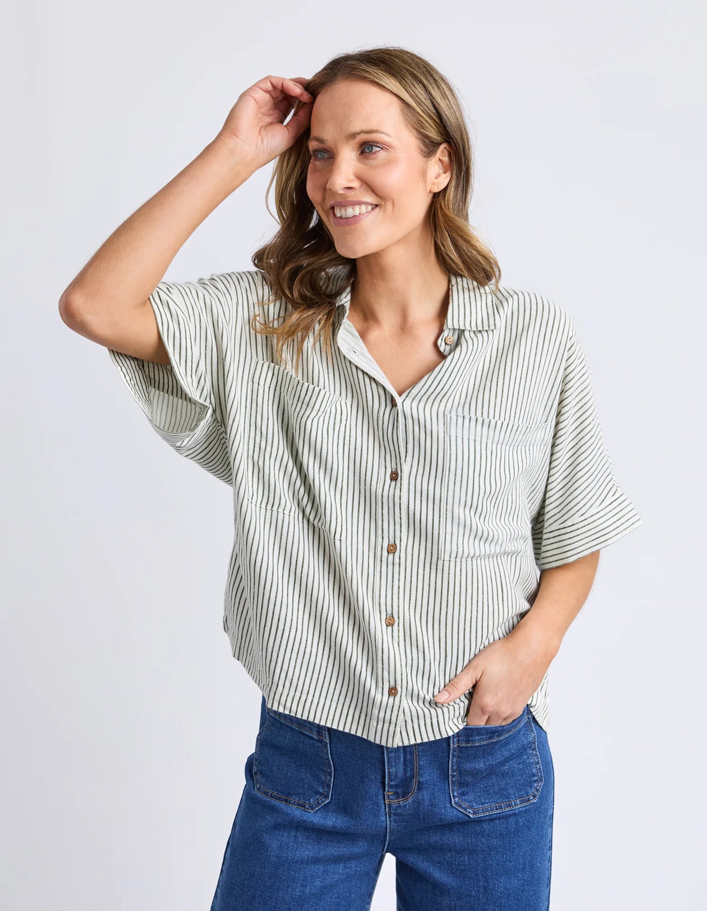 Ruth Short Sleeve Shirt Basil Stripe